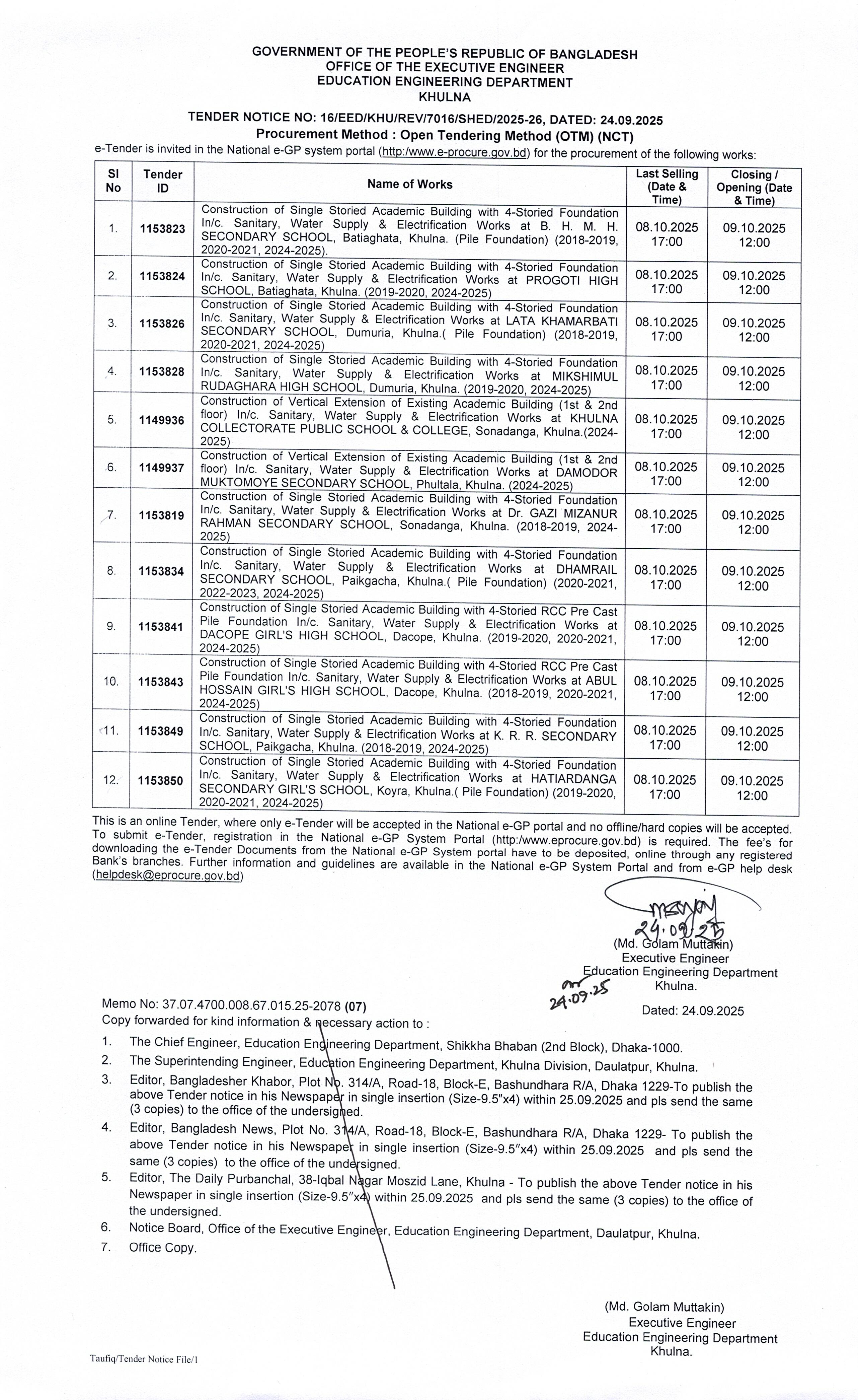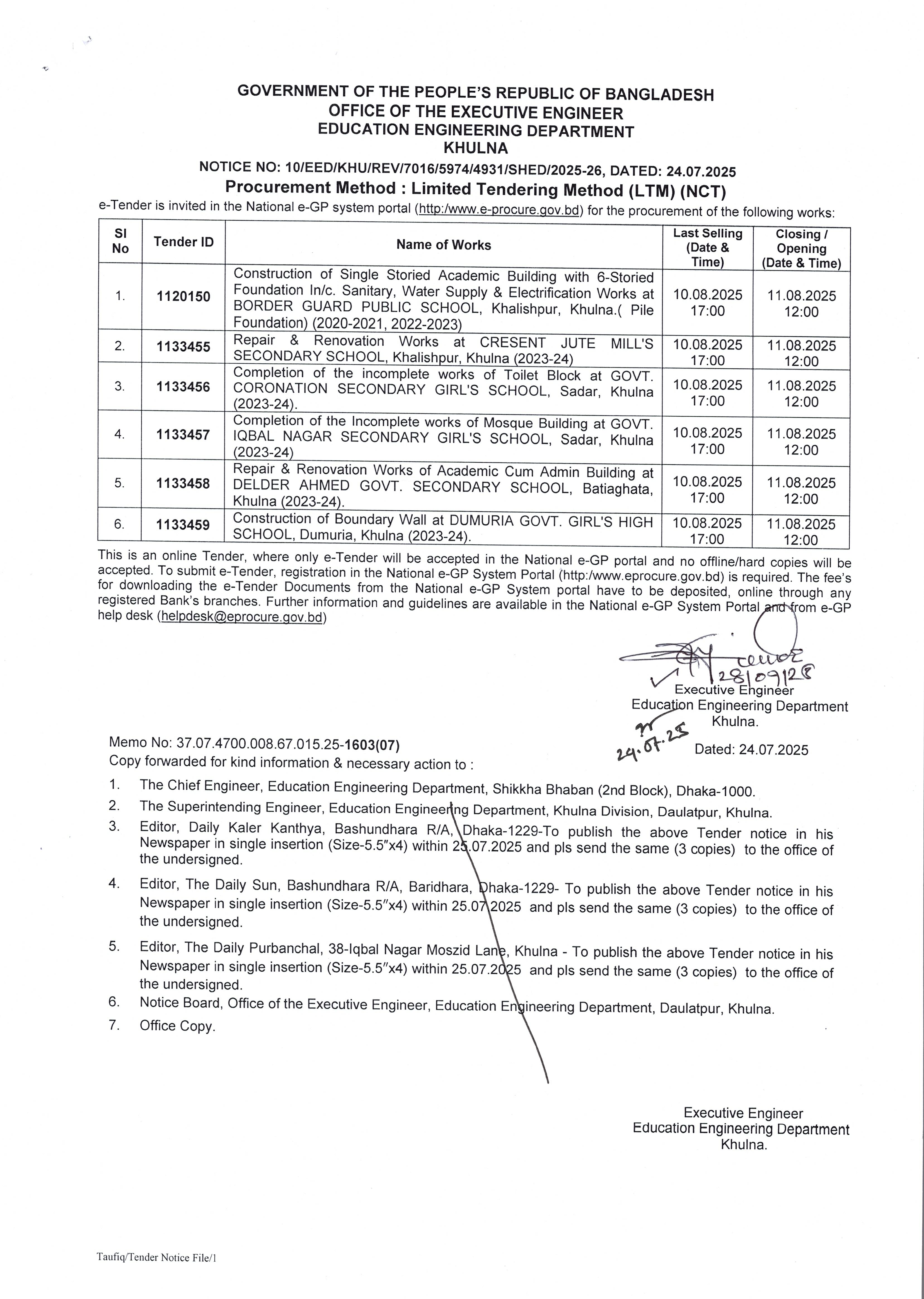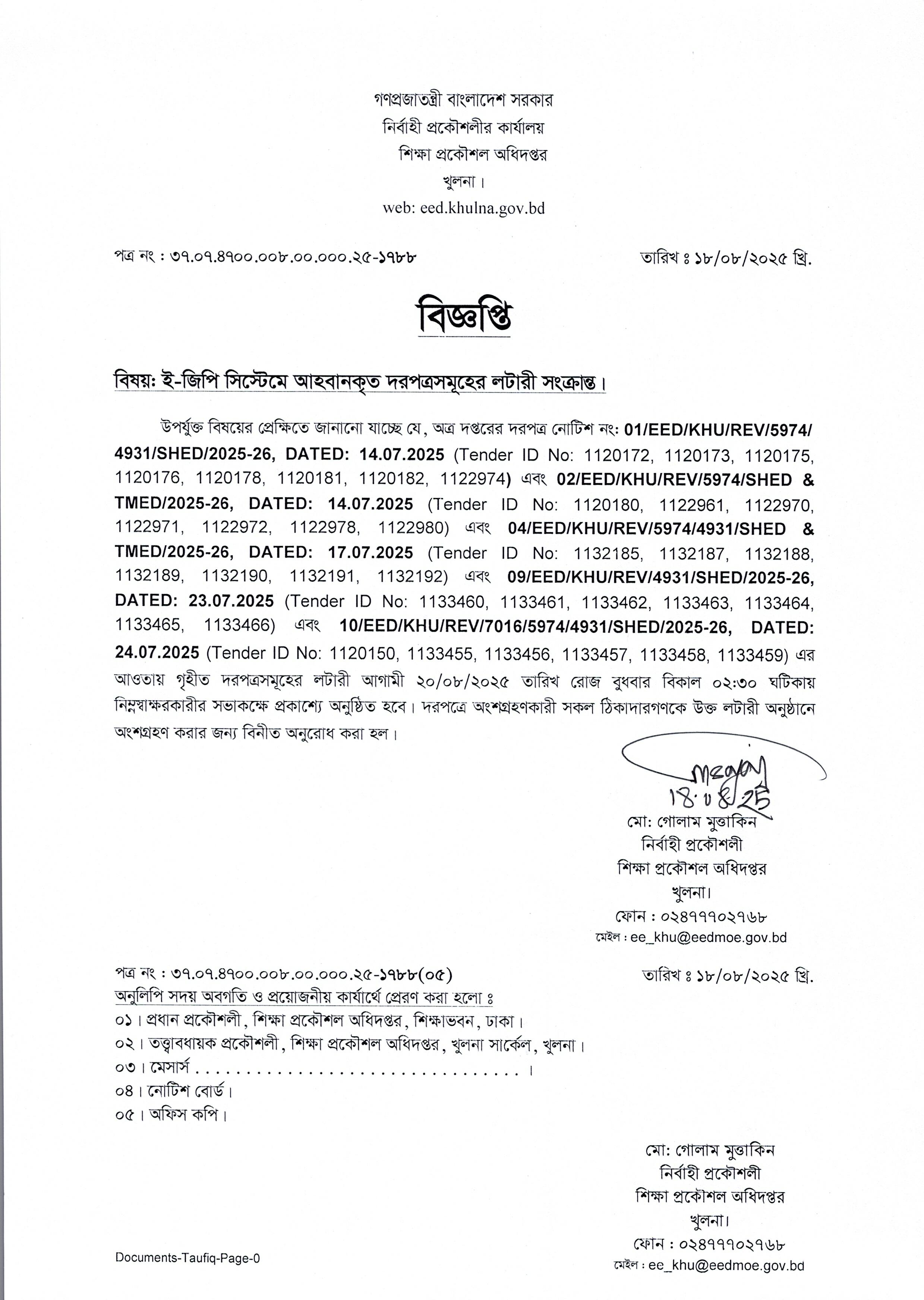 | ১০ | ১০. টেন্ডার নোটিশ নং-১০/২০২৫-২৬ (৭০১৬/৫৯৭৪/৪৯৩১-মাউশি) তারিখ : ২৪/০৭/২০২৫ খ্রি. | | | ২৪-০৭-২০২৫ | দেখুন |